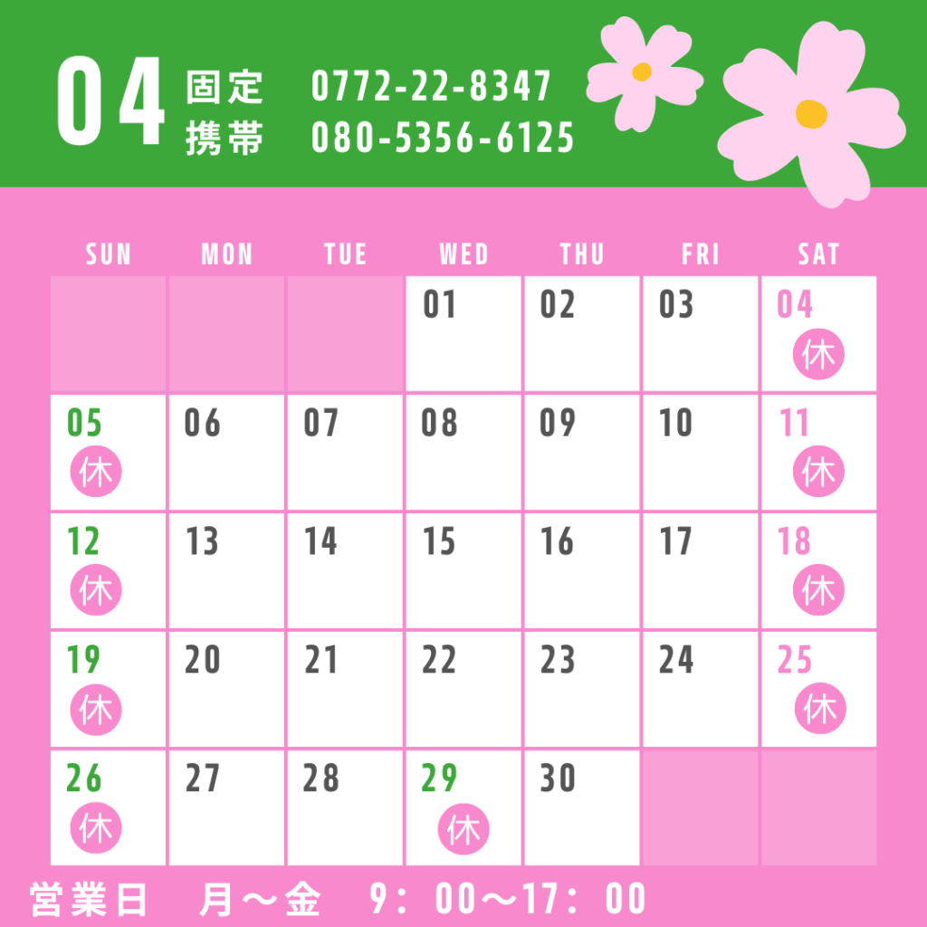2026年4月のカレンダーです。